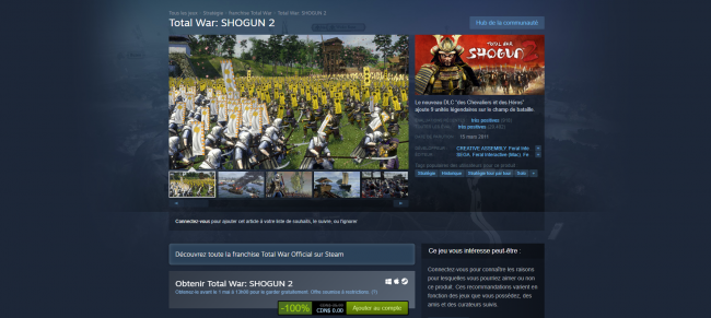 Total War: SHOGUN 2 est gratuit sur steam pour un temps limité Archives : Jeux vidéoPar François «Leonin» Savard27/04/2020Excellent jeu! Profitez-en pour l’ajouter à votre bibliothèque virtuelle.